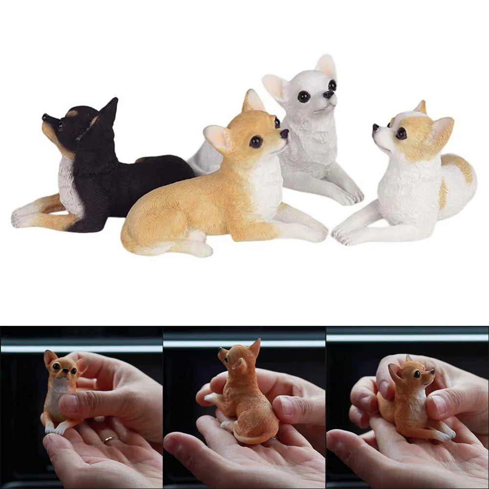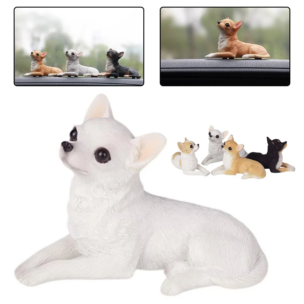 8x4x5.2cm Resin Chihuahua Dog Sculpture Head Doll Ornament Car Dashboard Decor Dog Puppy Gifts Garden Decoration