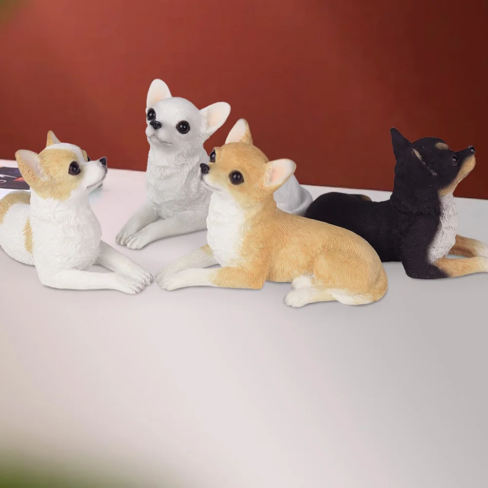 Real Life Sitting Chihuahua Sculpture Highly Detailed Garden Decoration Dog Animals Art Statue Crafts Home Desk Decoration