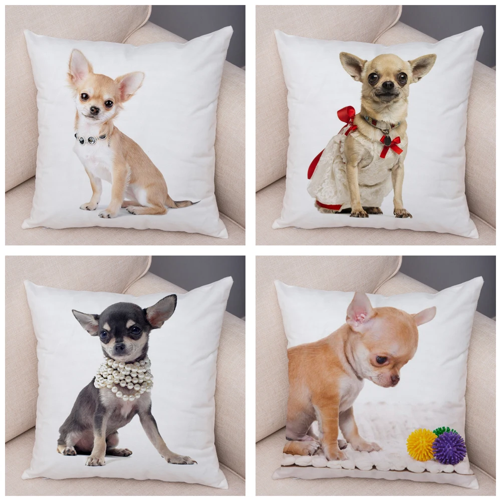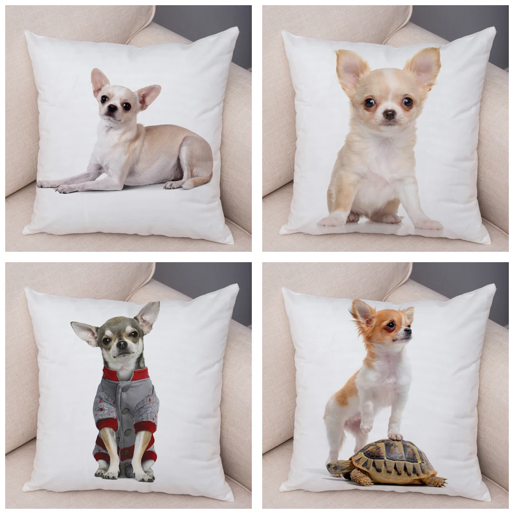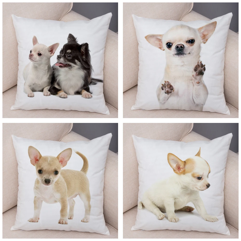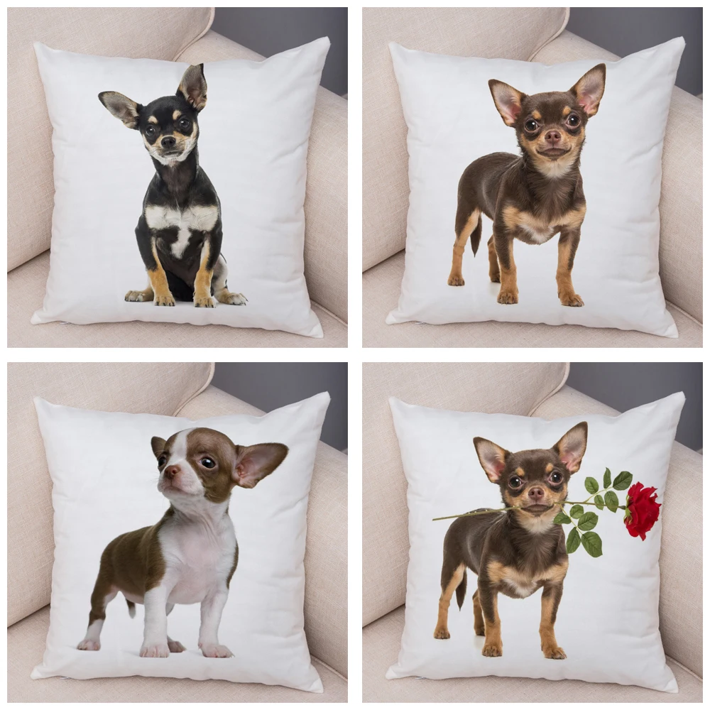 Lovely Pet Animal Pillow Case Decor Cute Little Dog Chihuahua Pillowcase Soft Plush Cushion Cover for Car Sofa Home 45x45cm