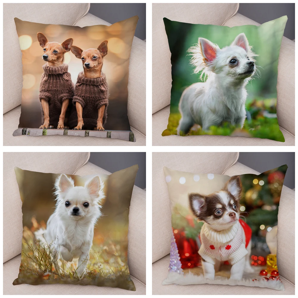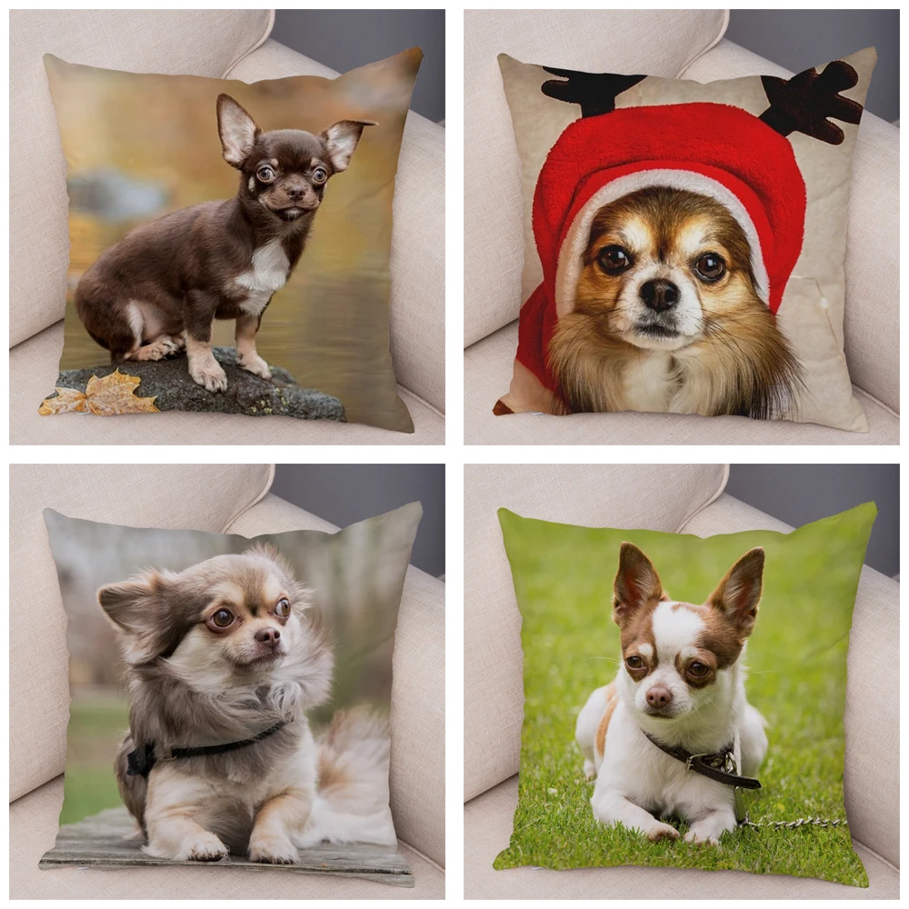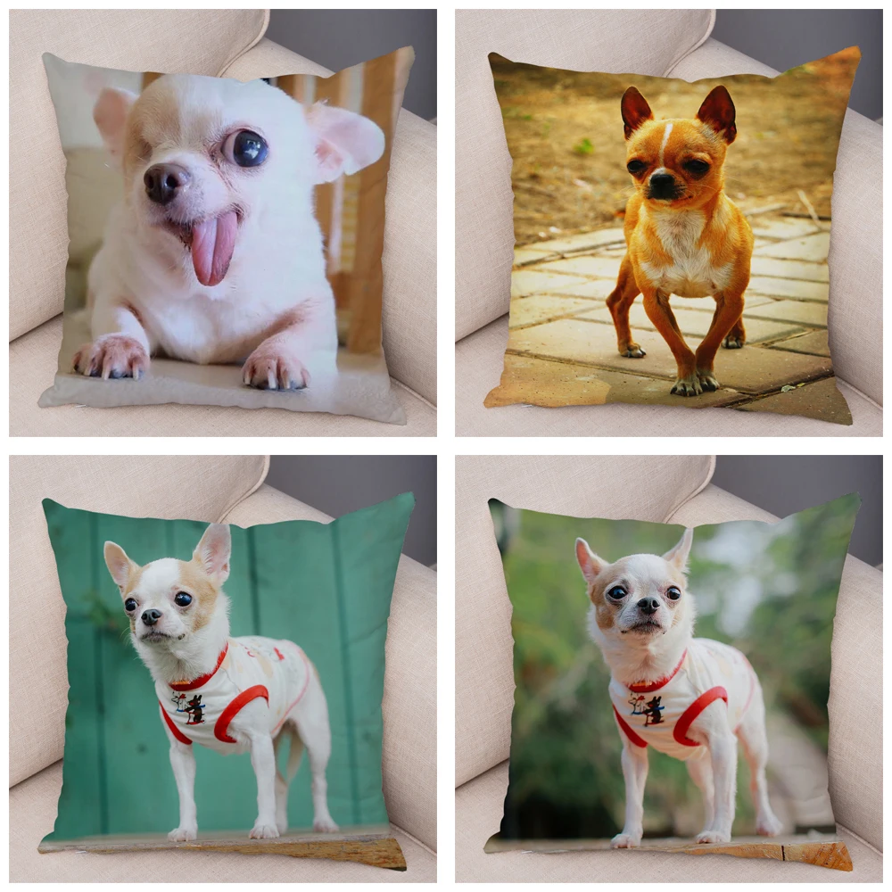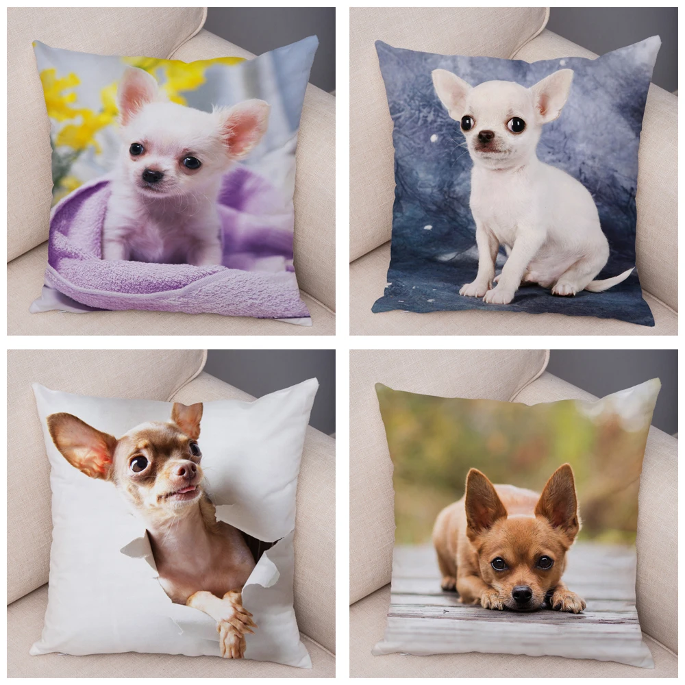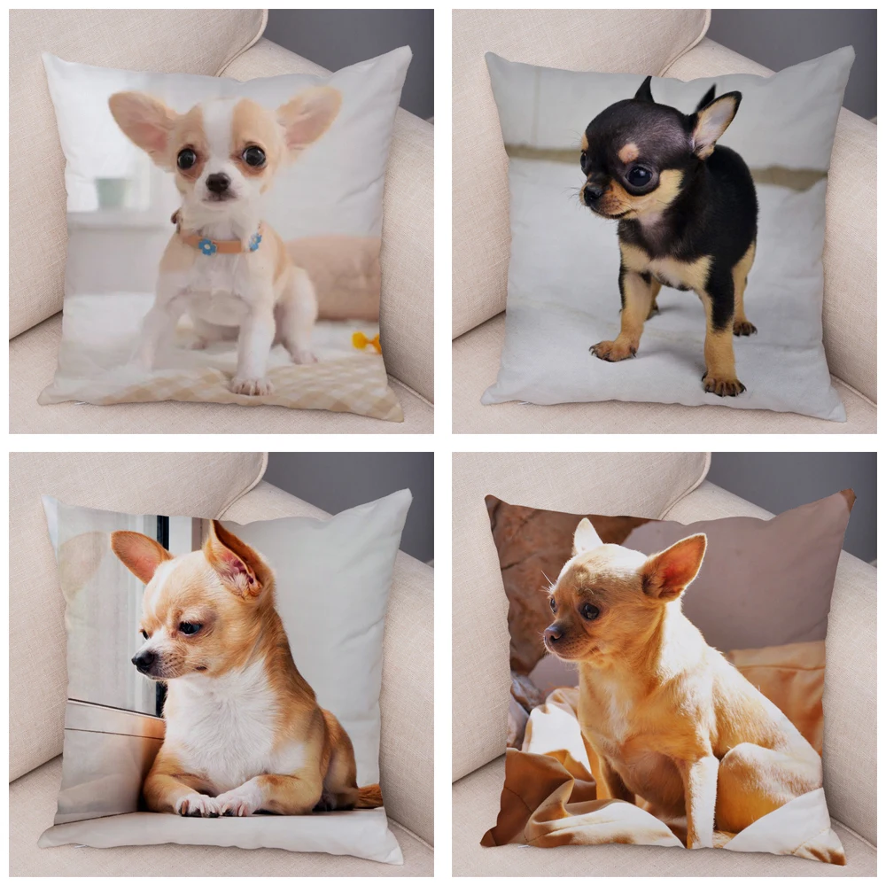 Lovely Pet Animal Pillow Case Decor Cute Little Dog Chihuahua Pillowcase Soft Plush Cushion Cover for Car Sofa Home 45x45cm