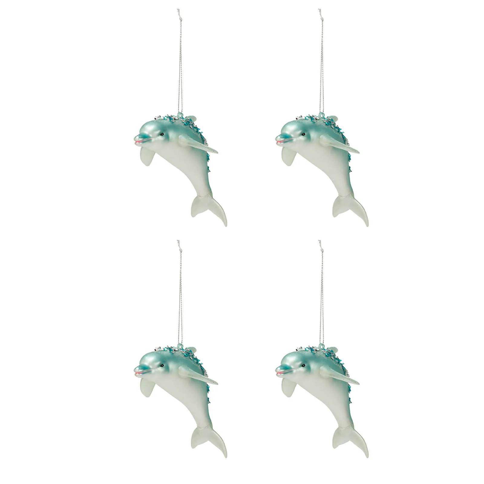 What You Can Get: what you will receive are 4 pieces of glass dolphin ornaments for Christmas tree, designed in blue, cute and sufficient to use; Besides, they will a of holiday cheer to your living room, or wherever you decide to place them