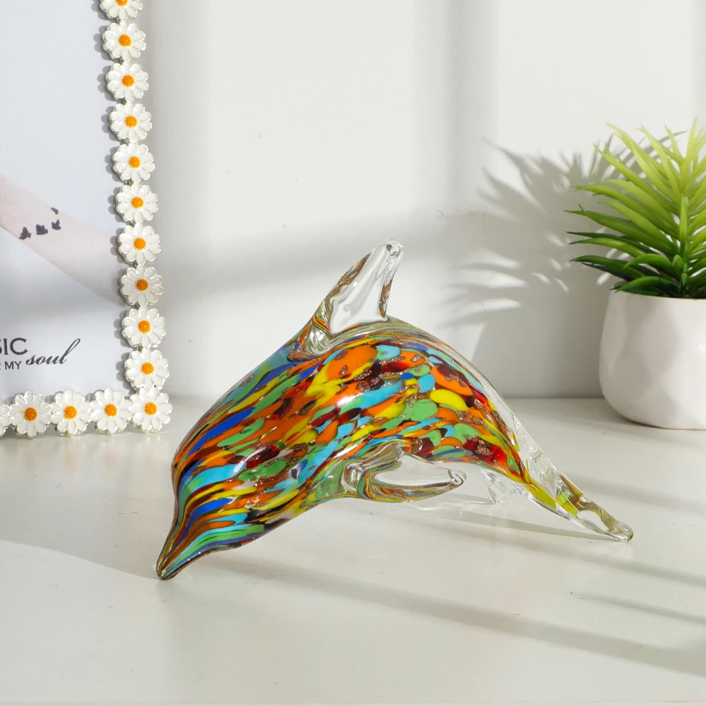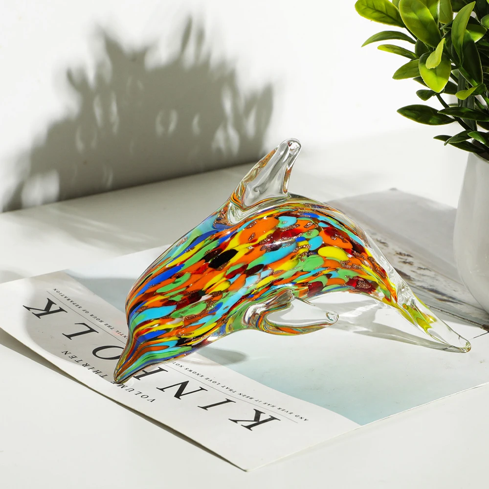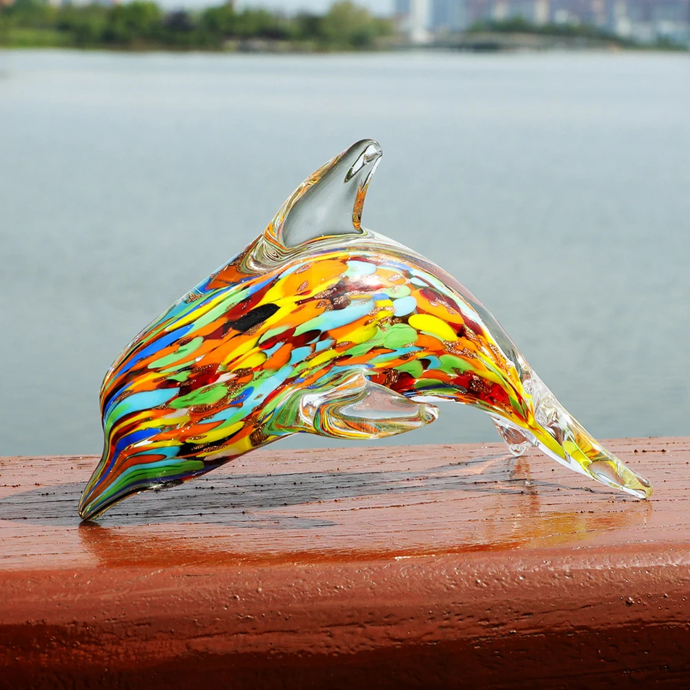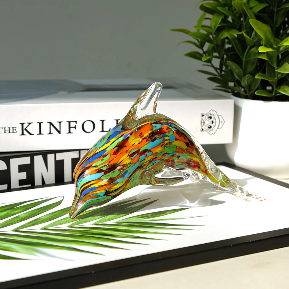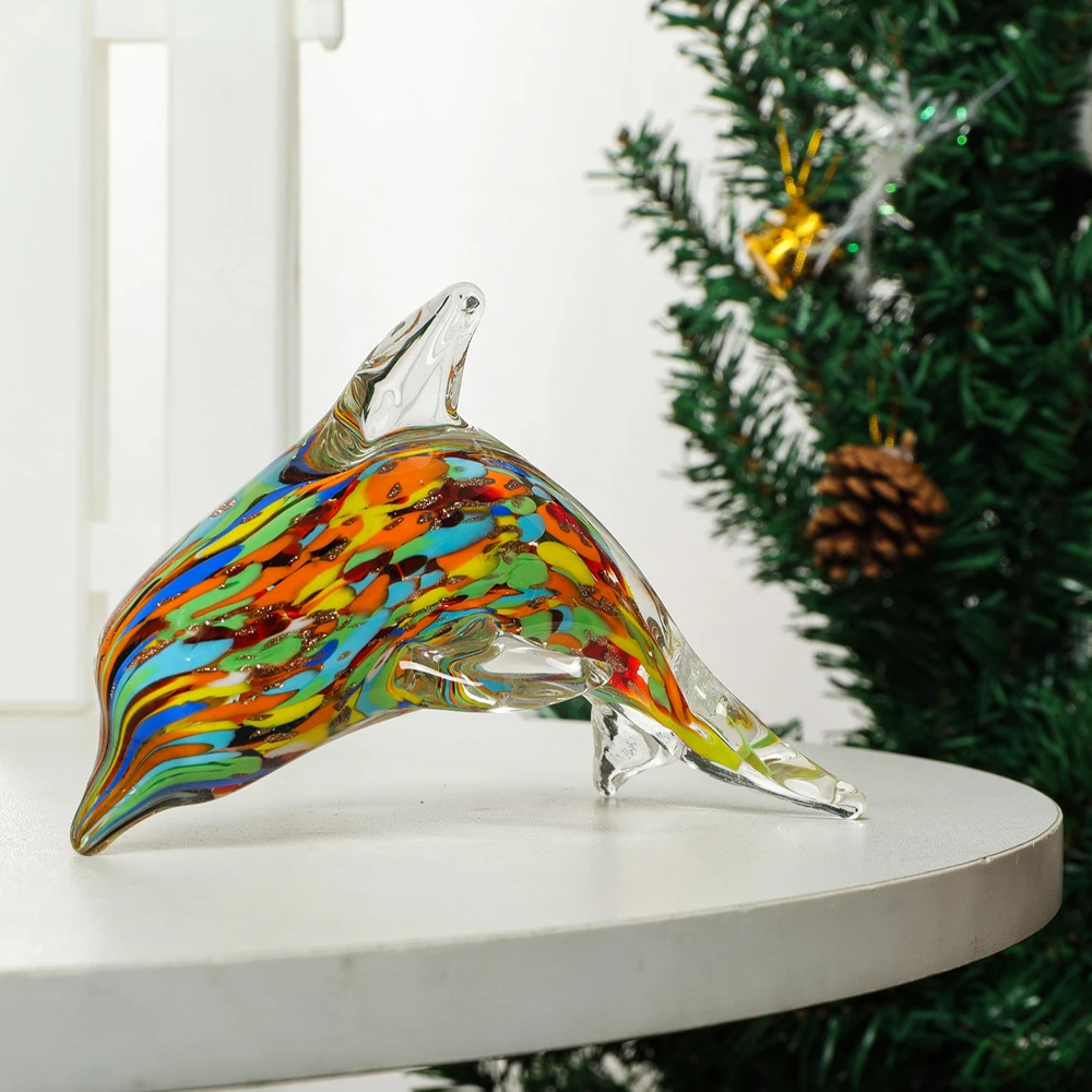 Crystal Glass Dolphin Figurine Hand Blown Sea Animal Sculpture Handmade Paperweight Gift Collectible Home Room Decor Ornaments