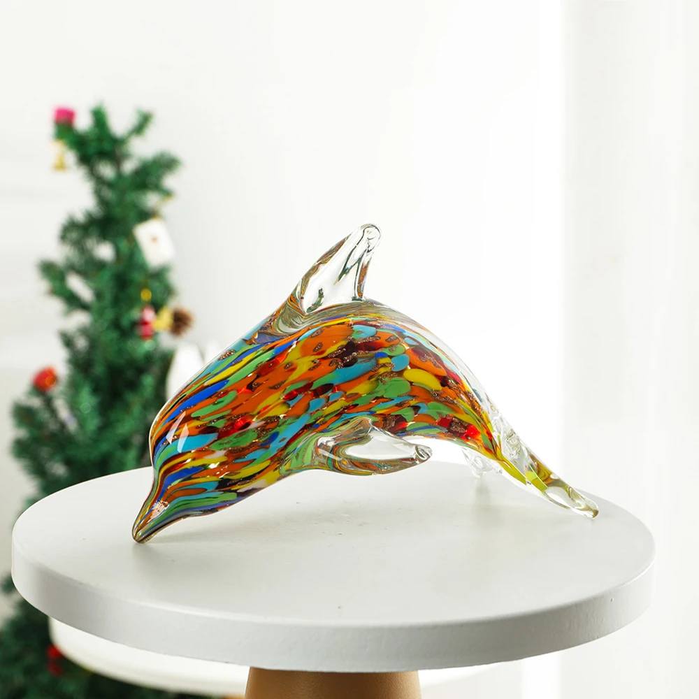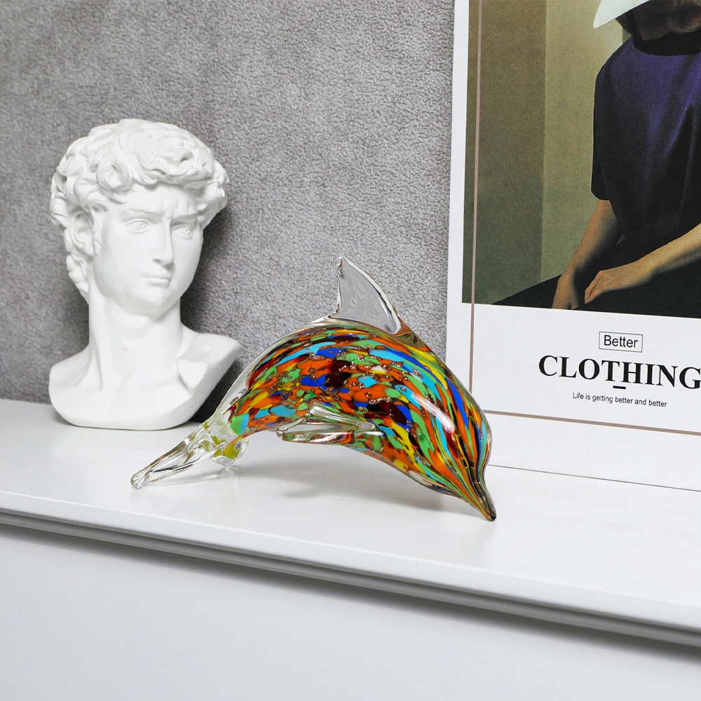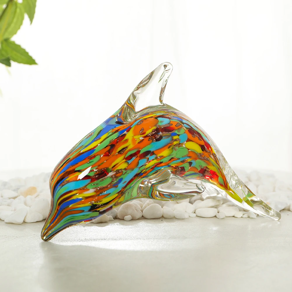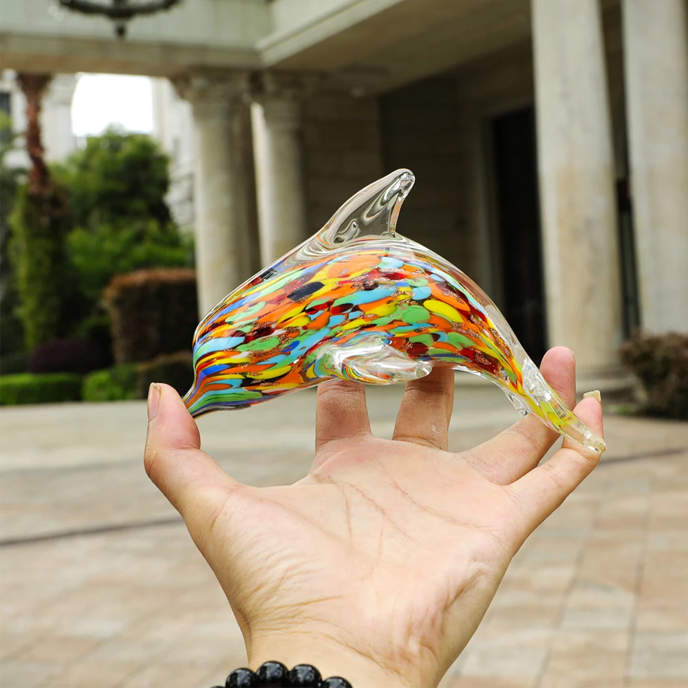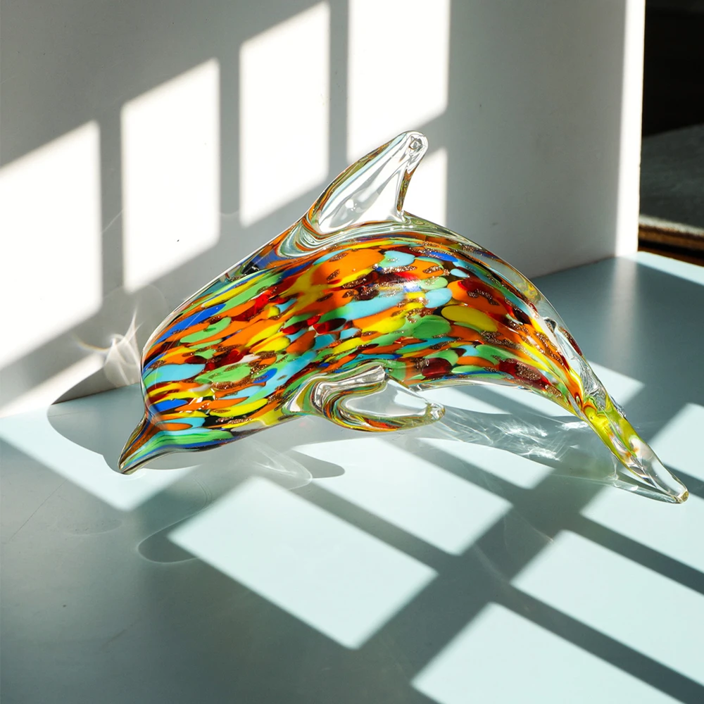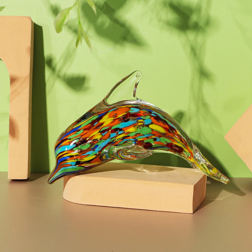 Crystal Glass Dolphin Figurine Hand Blown Sea Animal Sculpture Handmade Paperweight Gift Collectible Home Room Decor Ornaments