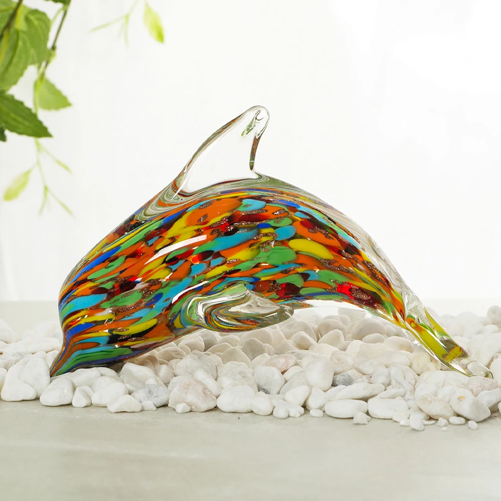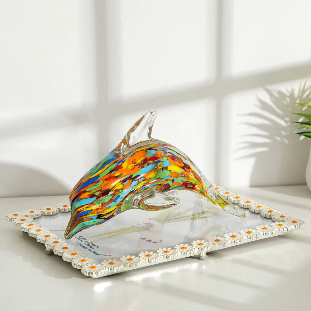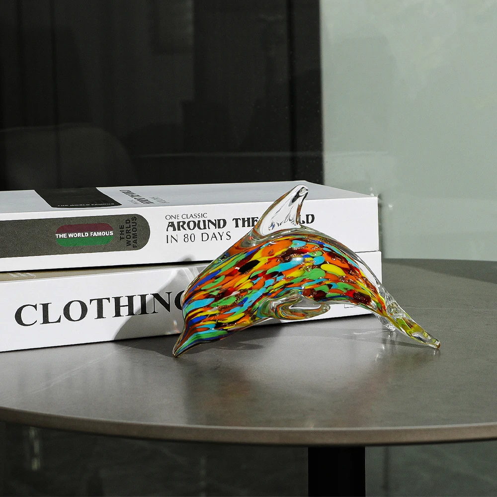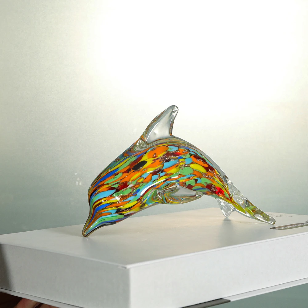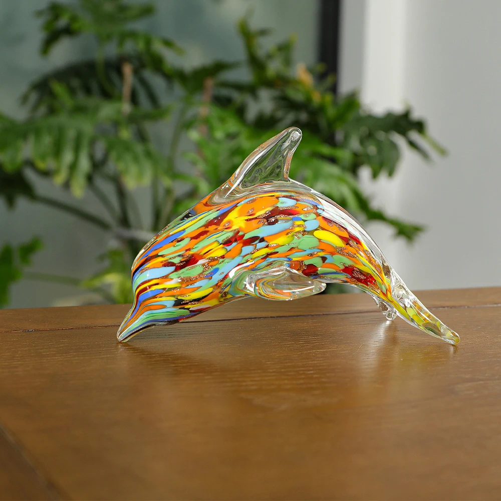 Crystal Glass Dolphin Figurine Hand Blown Sea Animal Sculpture Handmade Paperweight Gift Collectible Home Room Decor Ornaments