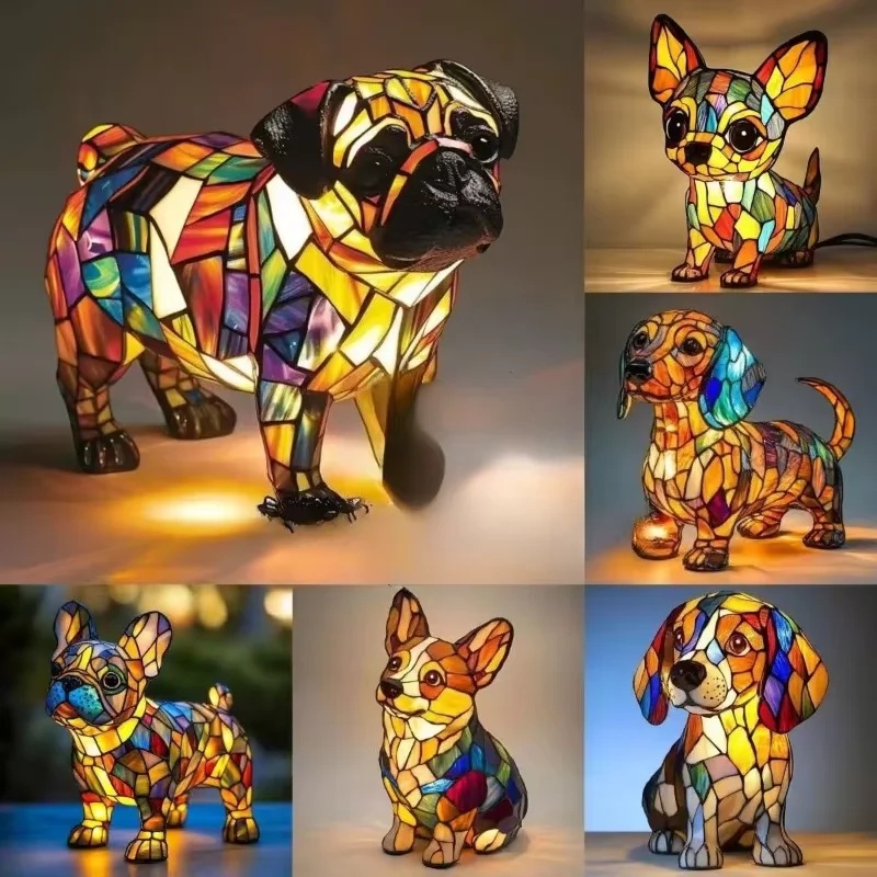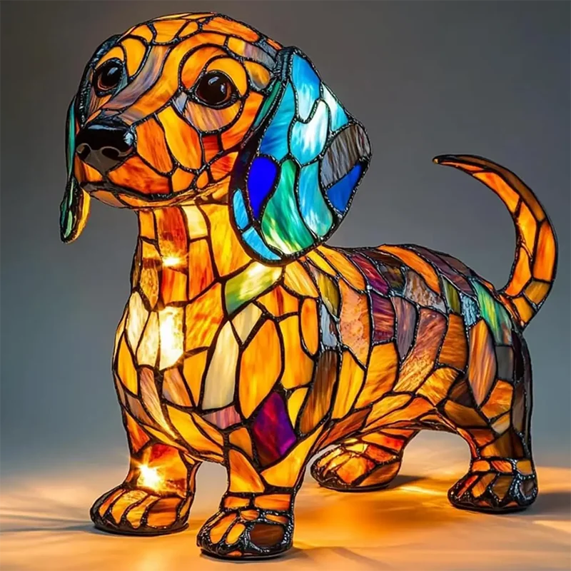 25cm Large Pitbull Resin Figurine with LED Night Light 3d Animal Resin Dachshund Lamp Desk Decor Night Stand Lamp Home Decor