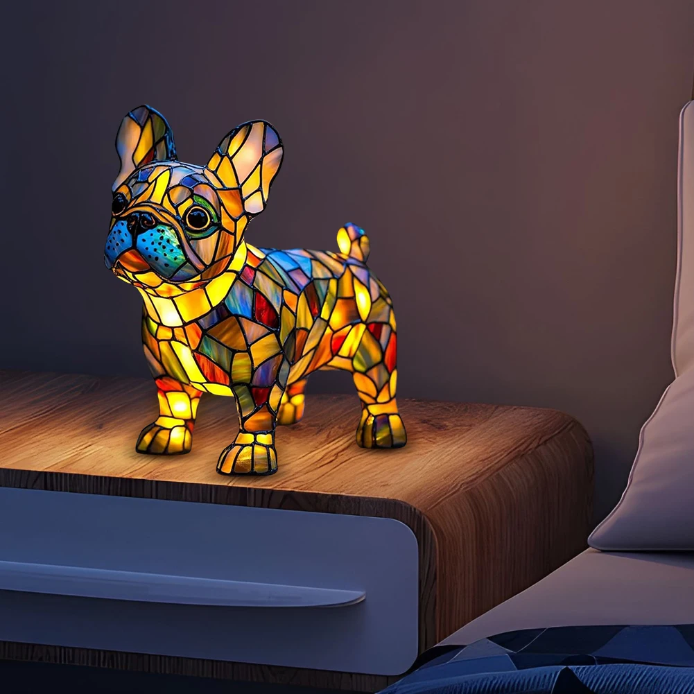 Chihuahua Lamp And Pug Lamp Dog Series Art Night Light Stained Resin French Bulldog Tabletop Night Light Cute Pet Dogs Desktop Decor