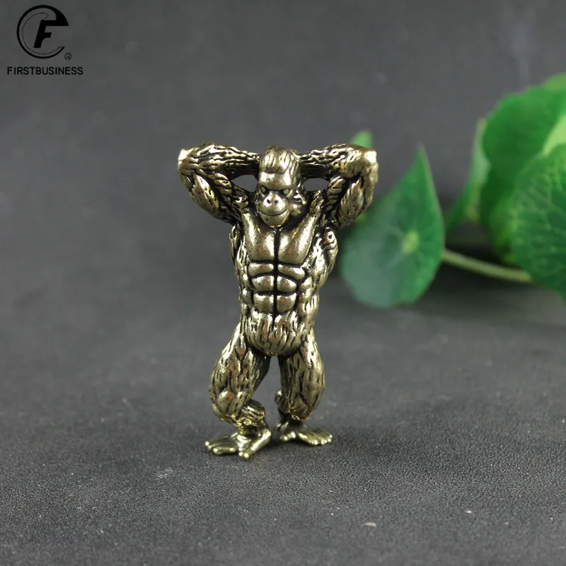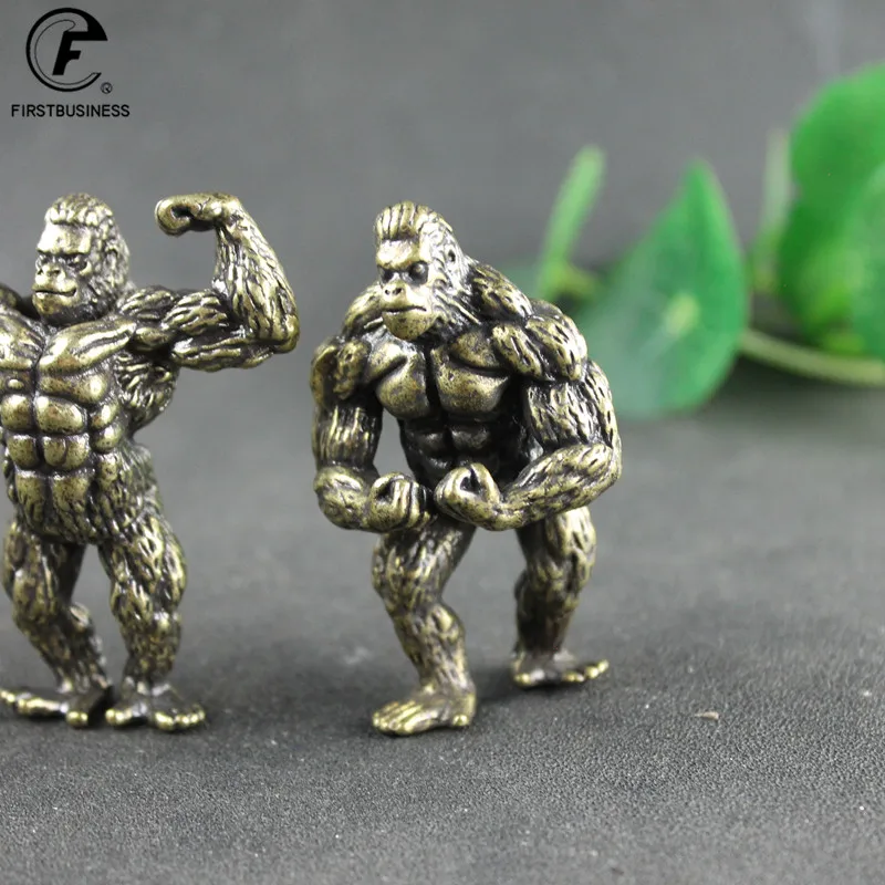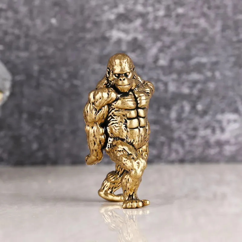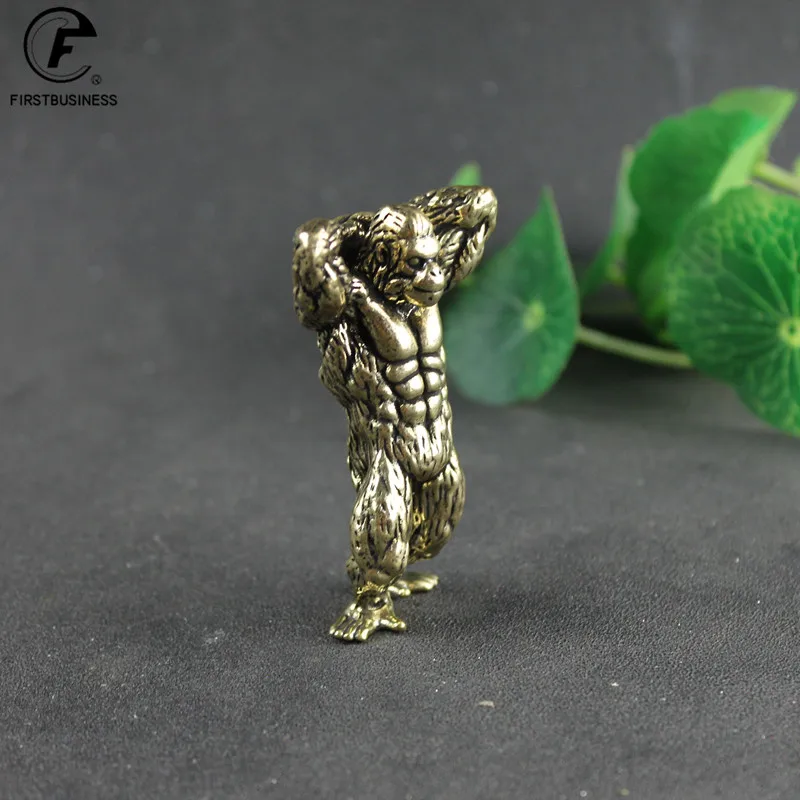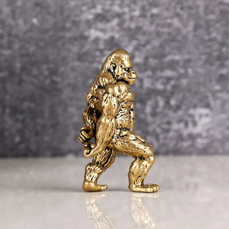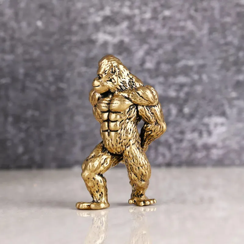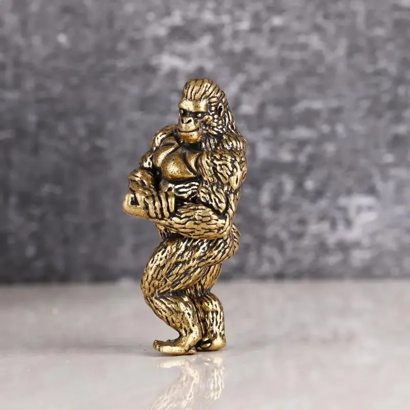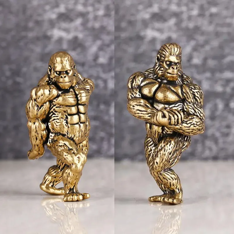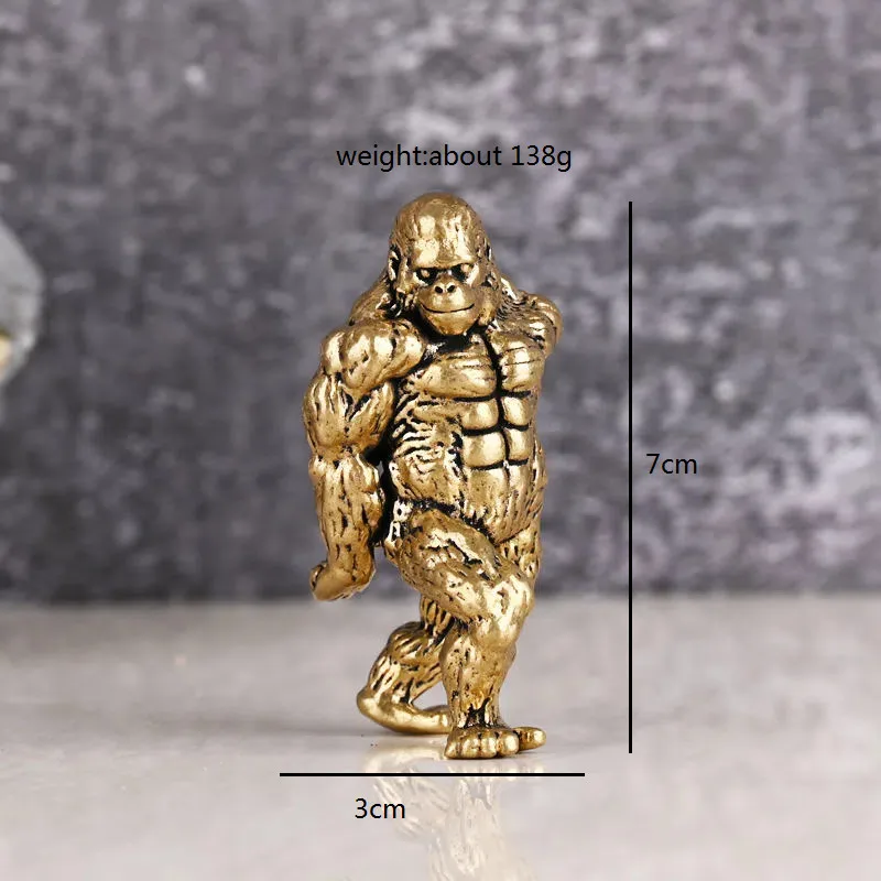 Heavy Brass Fitness Gorilla Small Sculpture Porch Decoration for Living Room Animal Orangutan Figurines Desktop Ornaments Crafts
