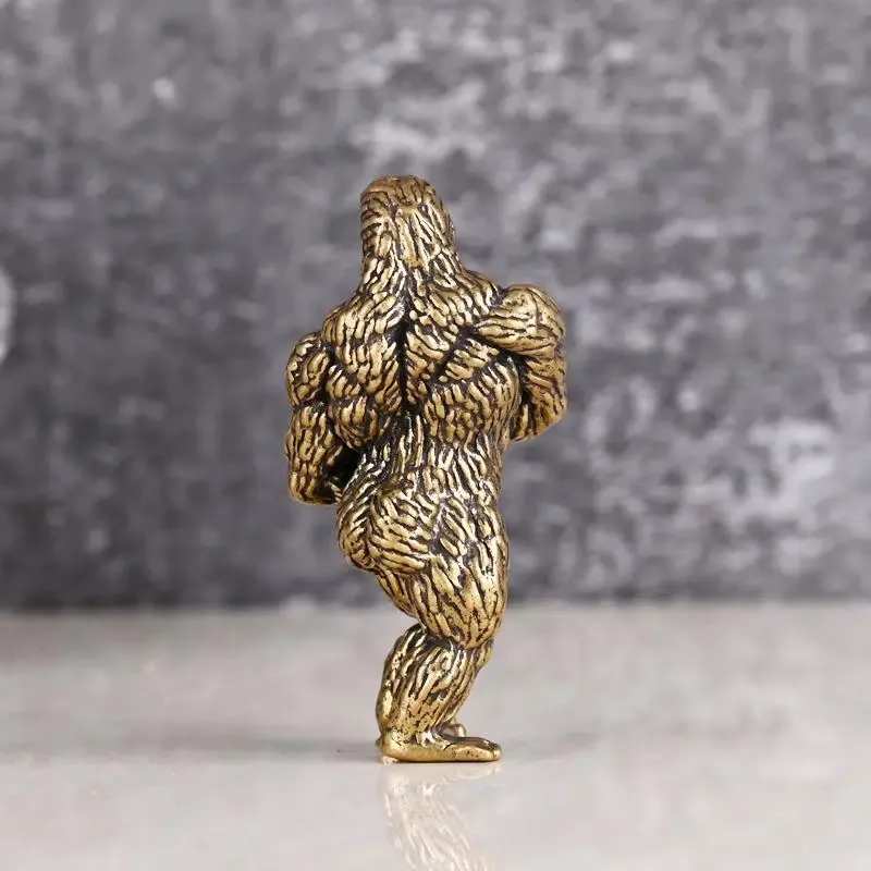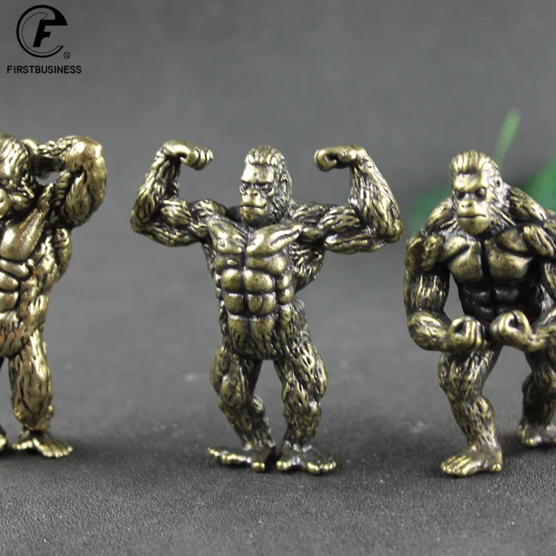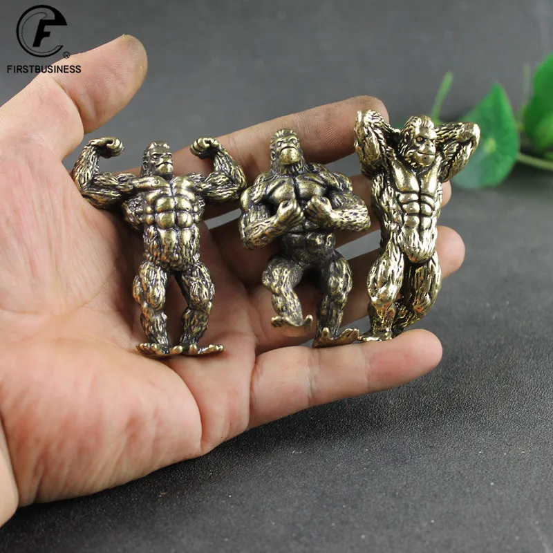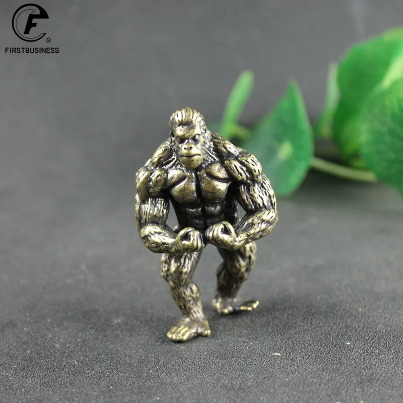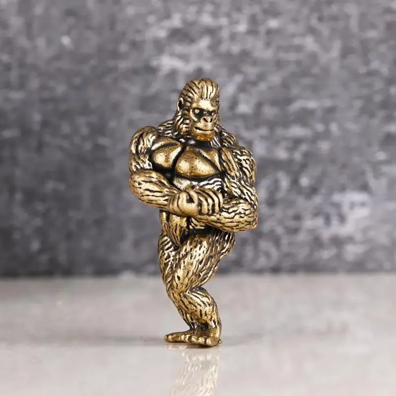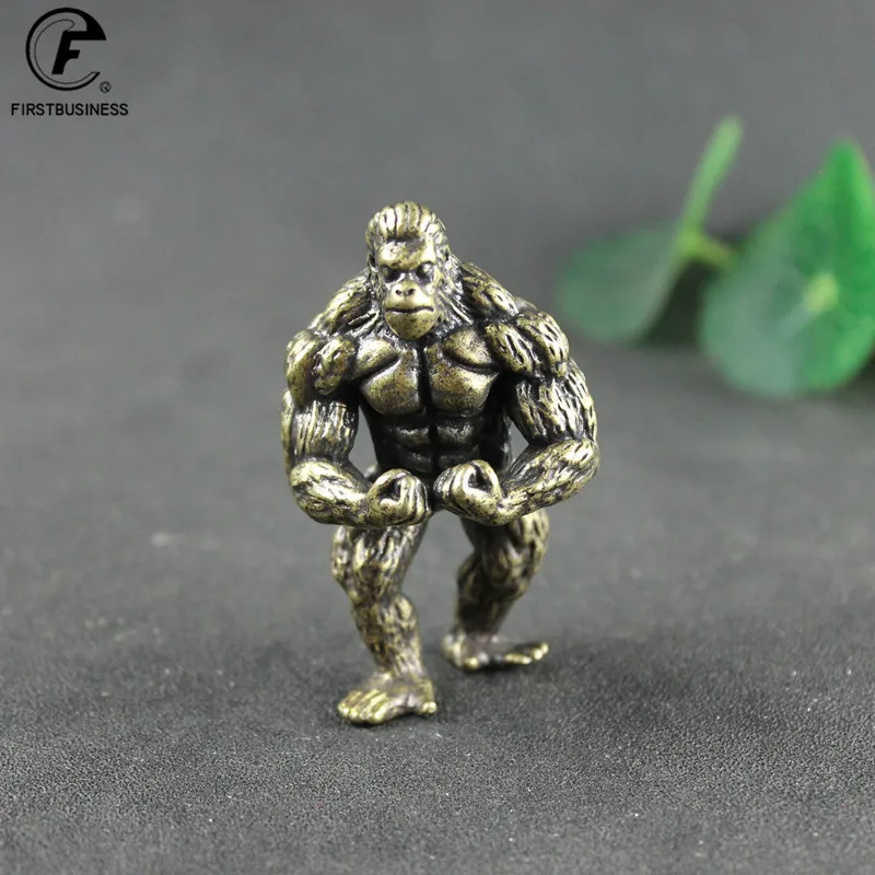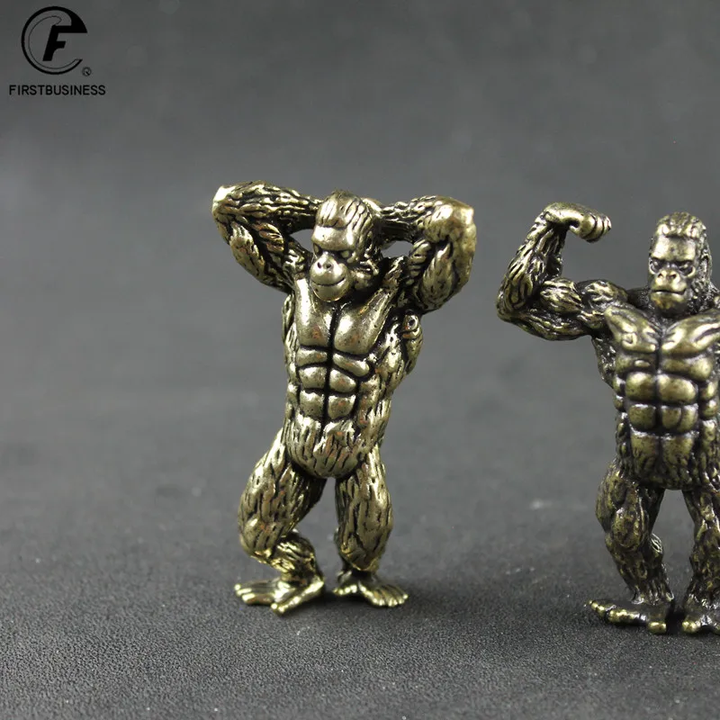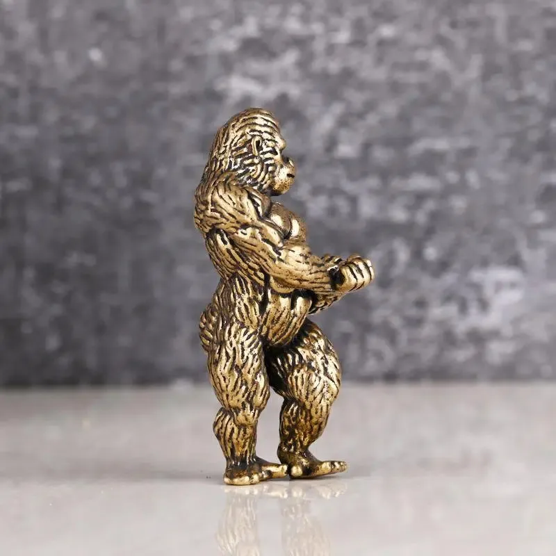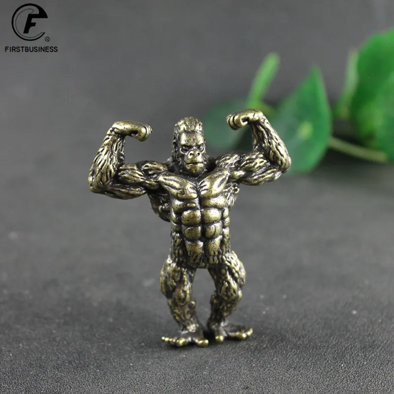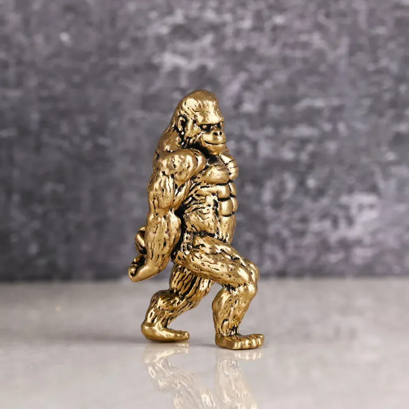 Heavy Brass Fitness Gorilla Small Sculpture Porch Decoration for Living Room Animal Orangutan Figurines Desktop Ornaments Crafts
