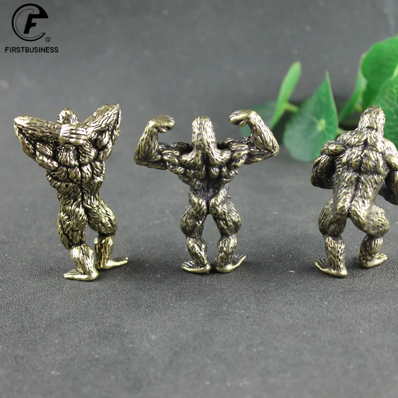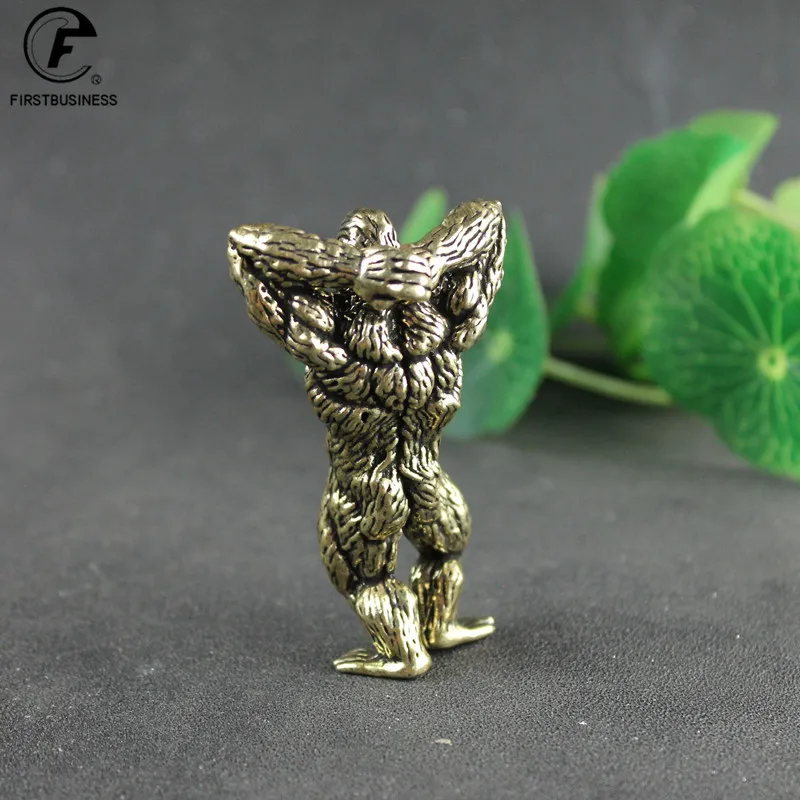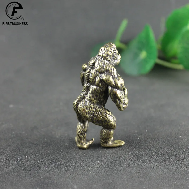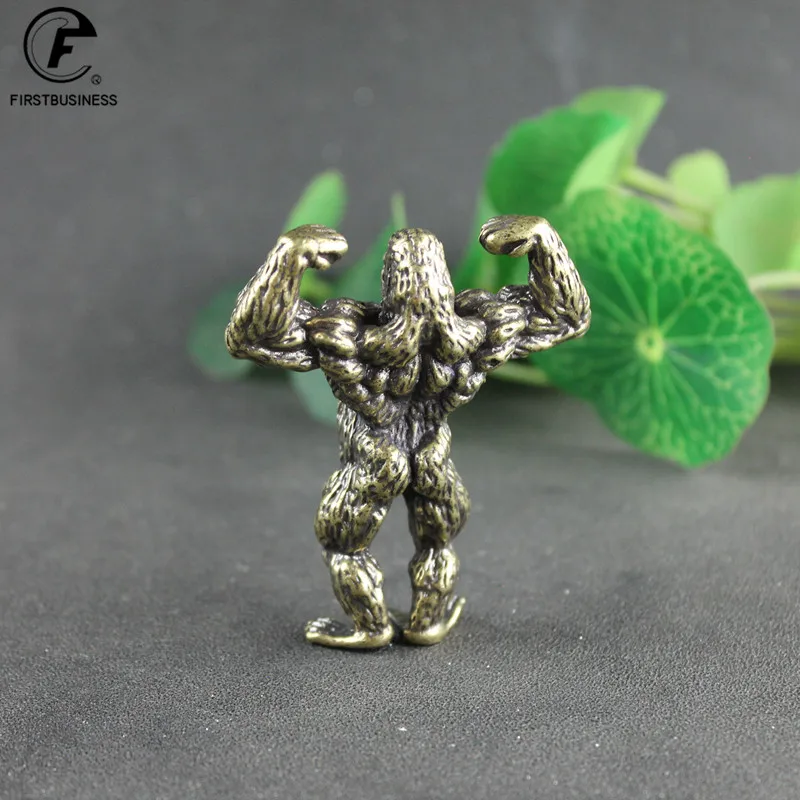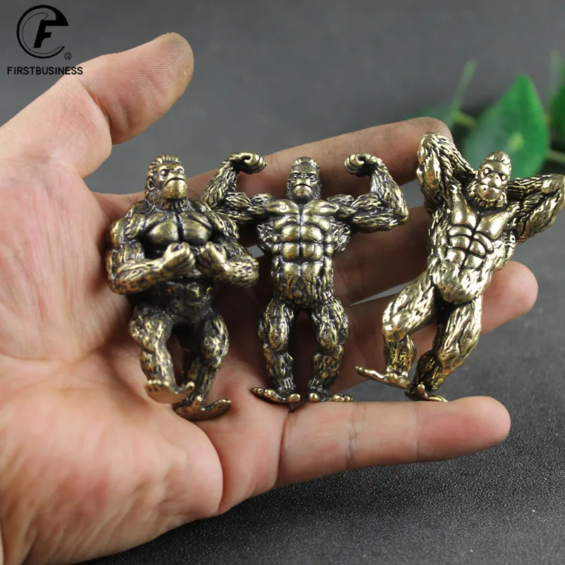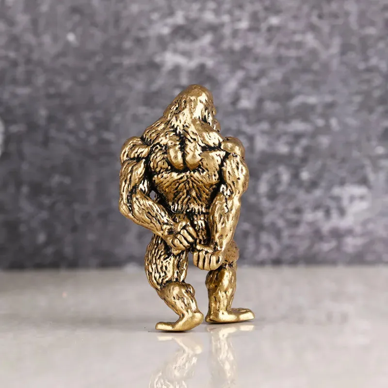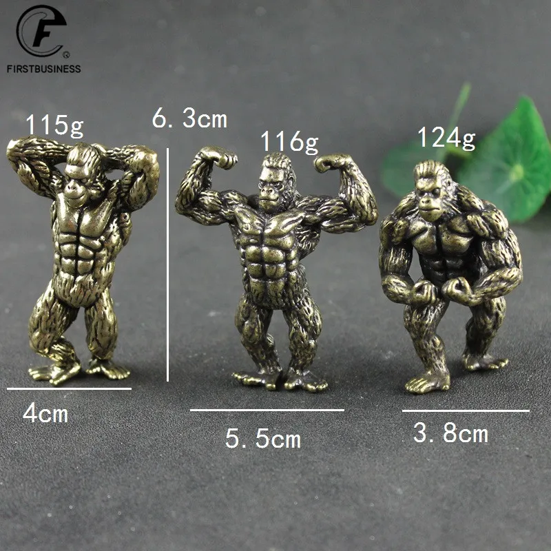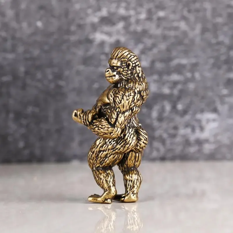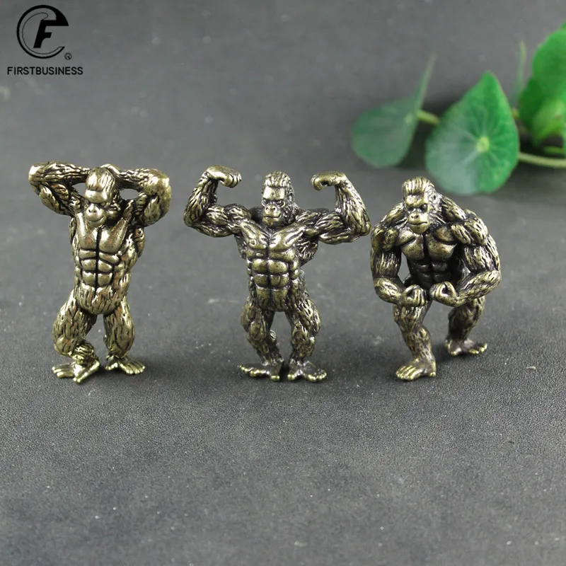 Heavy Brass Fitness Gorilla Small Sculpture Porch Decoration for Living Room Animal Orangutan Figurines Desktop Ornaments Crafts
